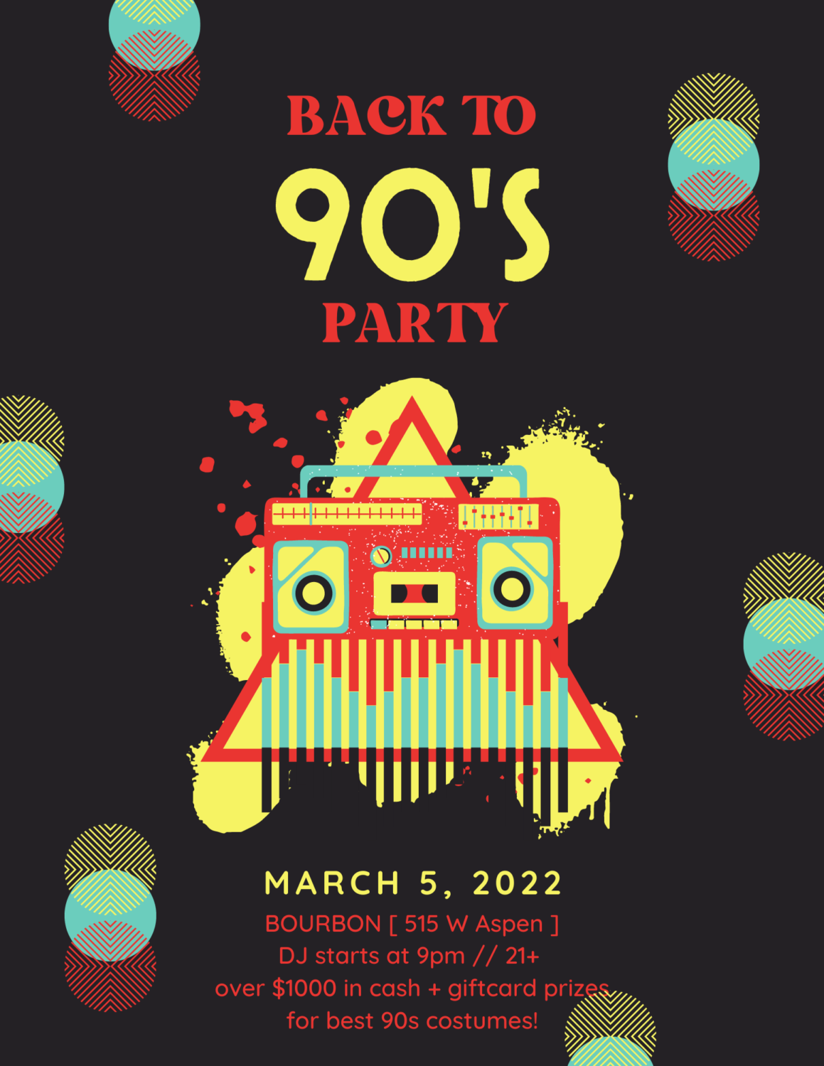 Come in your best 90s outfit [ think fanny packs, butterfly clips or too much flannel, but make it grunge ] to enter the costume contest!